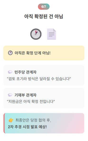여당인 더불어민주당은 여전히 보편지급을 주장하고 있고, 기획재정부는 선별 지급을 고수하고 있어 최종 결정까지는 조율이 필요합니다.