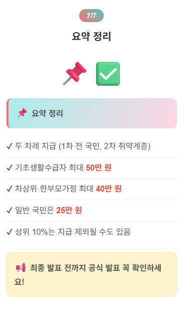 | 소득 상위 10% | 제외 가능성 있음 | 제외 가능성 있음 | 0원 (예상) |