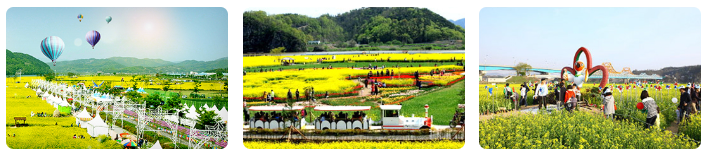 ◆ 지역 예술 공연 및 체험: 개막식 공연 및 화관 만들기, 자전거 투어, 지역 예술단 공연 유채꽃 라디엔티어링 등 다양한 거리행사가 많아 풍성하게 즐길 수 있습니다.