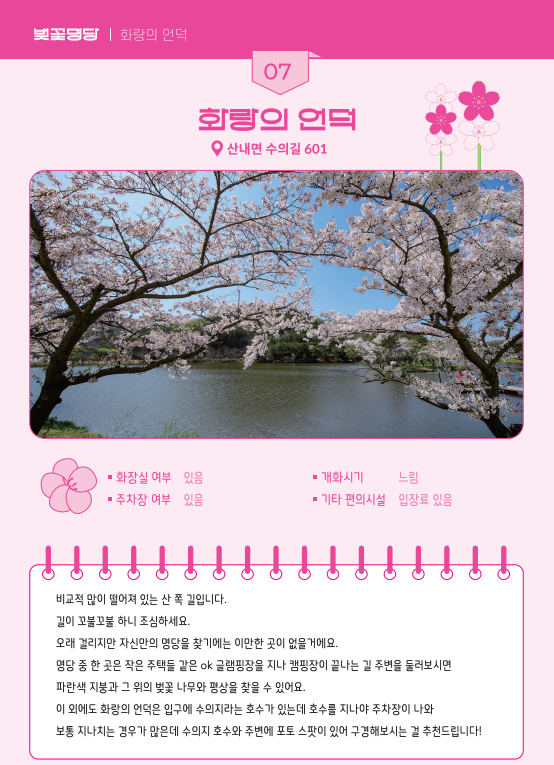 🔹 11:30 AM – 서출지 이동, 연못과 함께 벚꽃 감상 (1시간)
