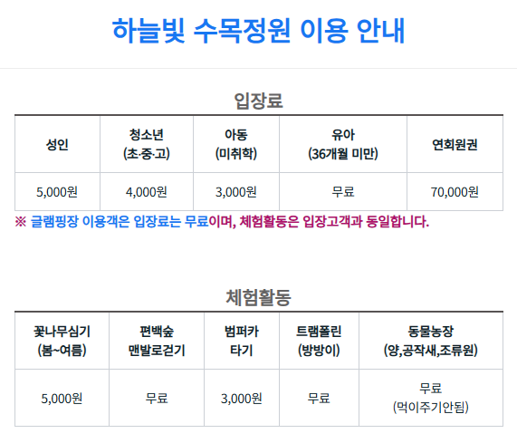 - 글램핑장 이용 고객은 입장 무료( 체험비는 별도)