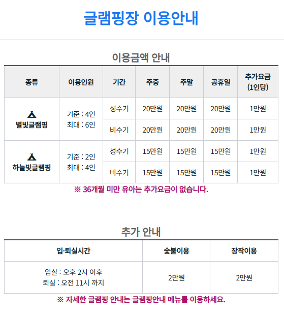 - 글램핑장 이용금액은 아래의 사진을 확인하세요.