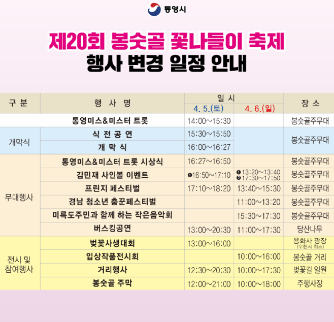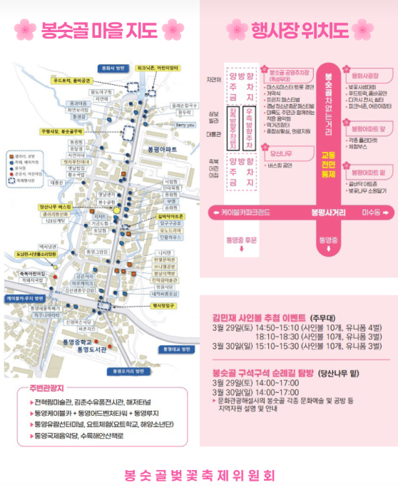 장소: 경남 통영시 봉수로 93 용화사 광장 ~ 봉숫골 벚꽃길 일대