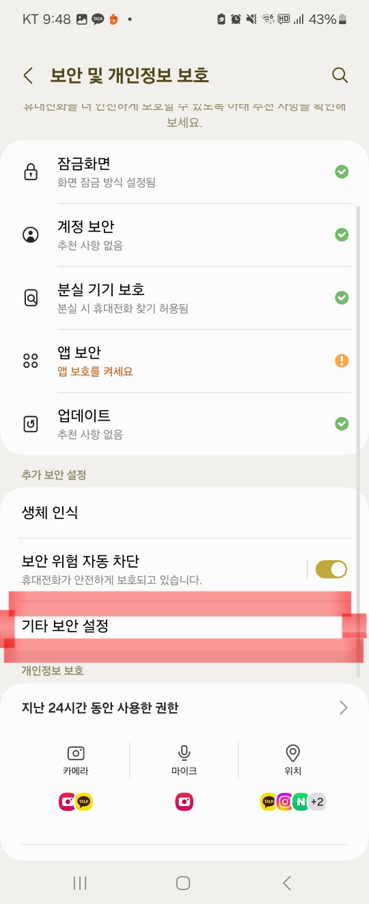 - 기타 보안 설정 → SIM 카드 잠금 설정